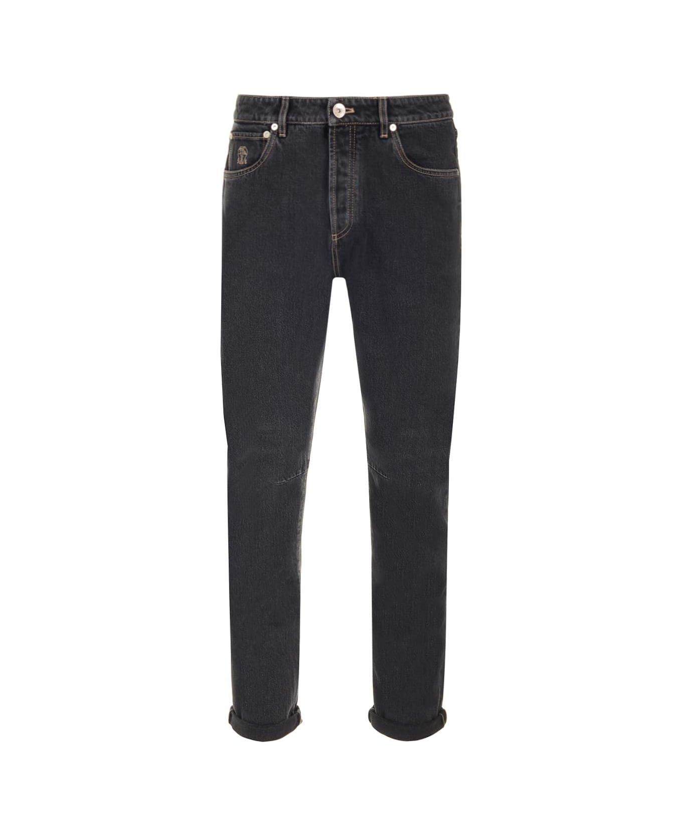 Traditional fit five-pocket trousers in dark gray denim from Brunello Cucinelli, with button closure, rear patch pockets, brand initials embroidered on the pocket.