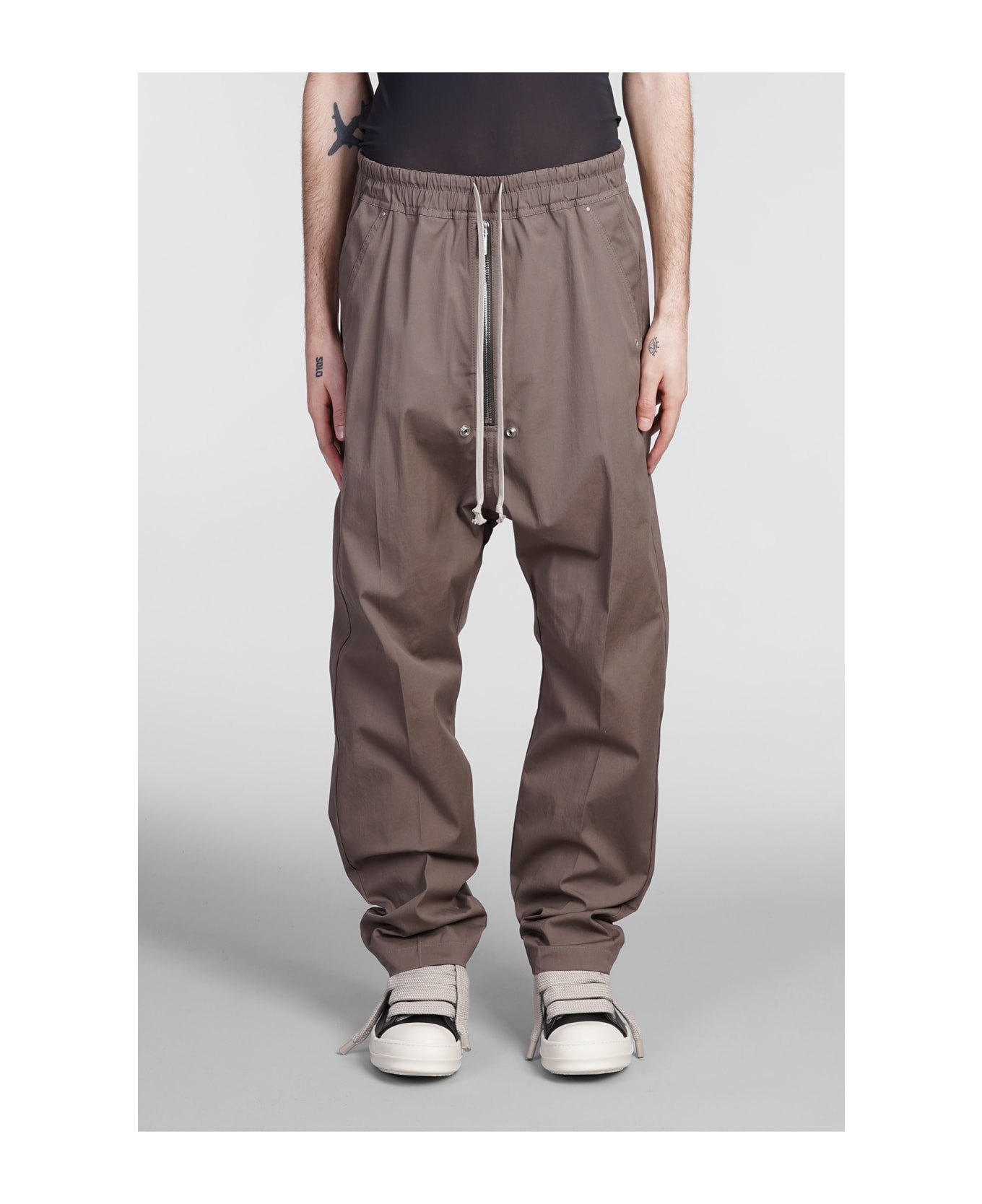 Pants in taupe cotton, elastic waist, coulisse closure, four pockets, 97% Cottone 3% Spandex, Made in Moldova, Model is 183 cm and wears 48