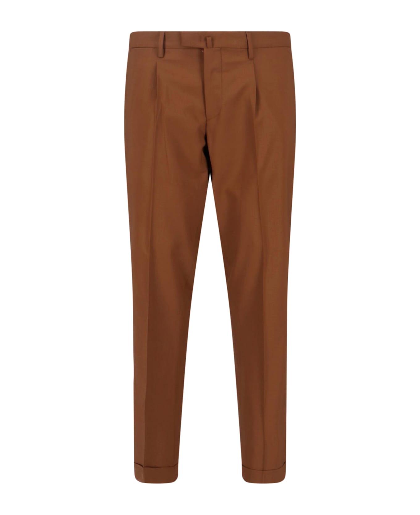 Briglia 1949 tailored trousers in brown virgin wool blend, medium waist, belt loops, zip and button closure, two side pockets, two back pockets, straight leg.