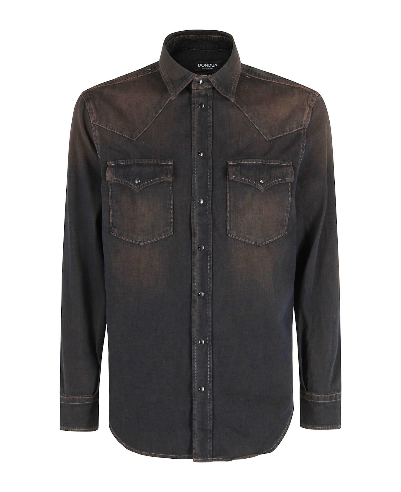 Texana shirt - Dondup - Brown color - Denim fabric - Classic collar - Long sleeve with cuff and buttons - Chest pockets with flap - Front button closure.