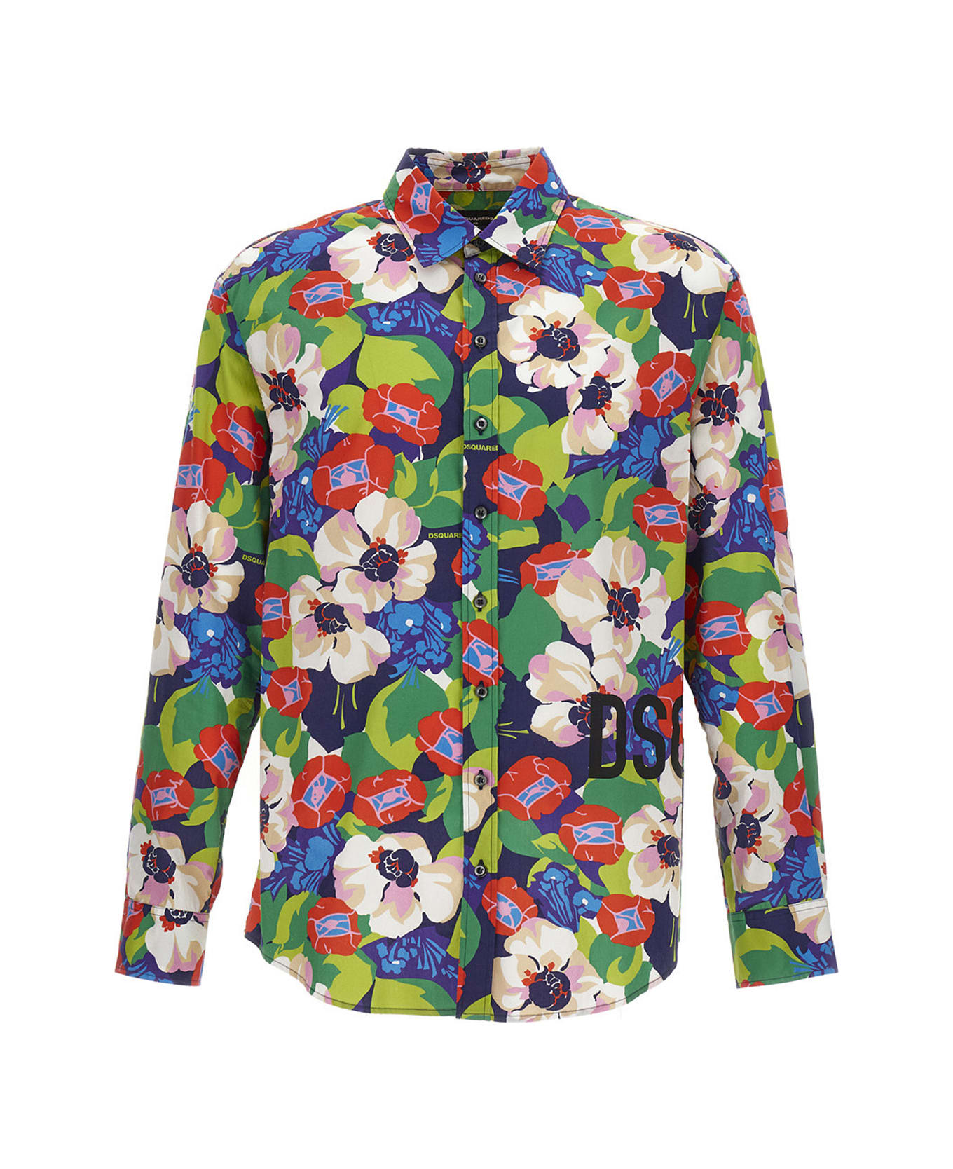 Dropped Shoulder' cotton shirt with all over floral print, button closure, long cuffed sleeves.