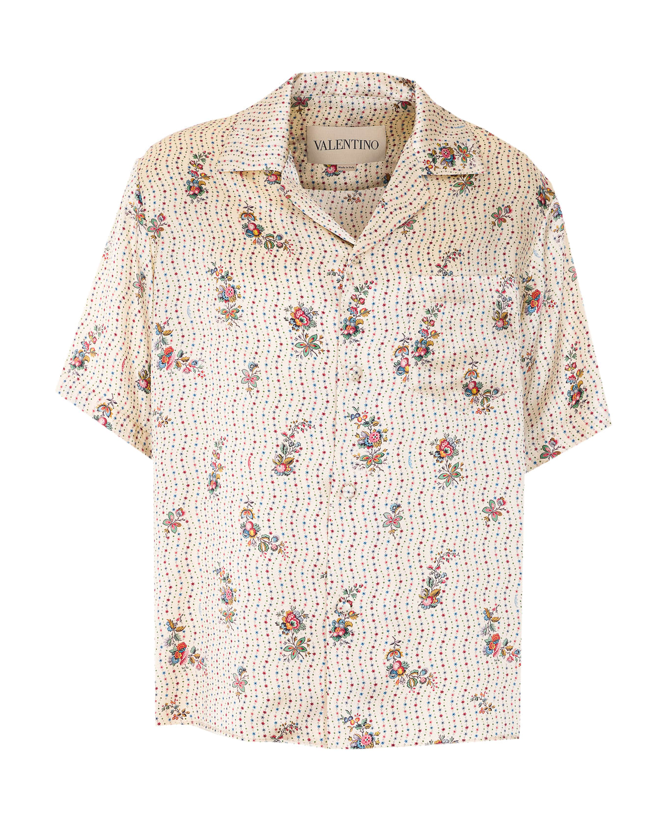 Valentino white Bowling shirt with frontal buttons closure, regular collar, printed, pocket on the front Composition: 100% Silk
