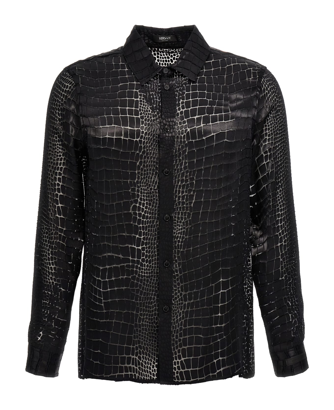 Devoré semi-transparent silk blend shirt with tone-on-tone crocodile print, button closure, long cuffed sleeves. Composition: 75% viscose, 25% silk