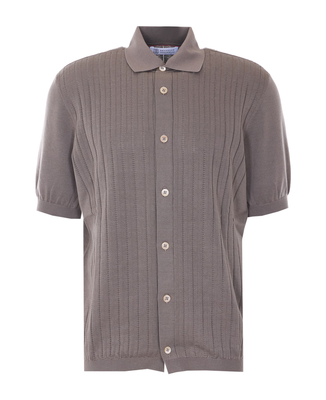 Brunello Cucinelli beige shirt with frontal buttons closure, short sleeves, regular collar