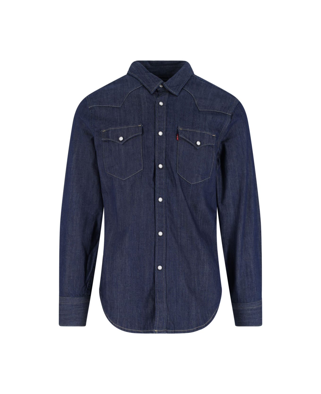 Western shirt in Levi's Strauss blue denim with classic collar, button closure, two flap pockets on the chest, logo label detail, button cuffs, curved hem. Composition: 100% Cotton