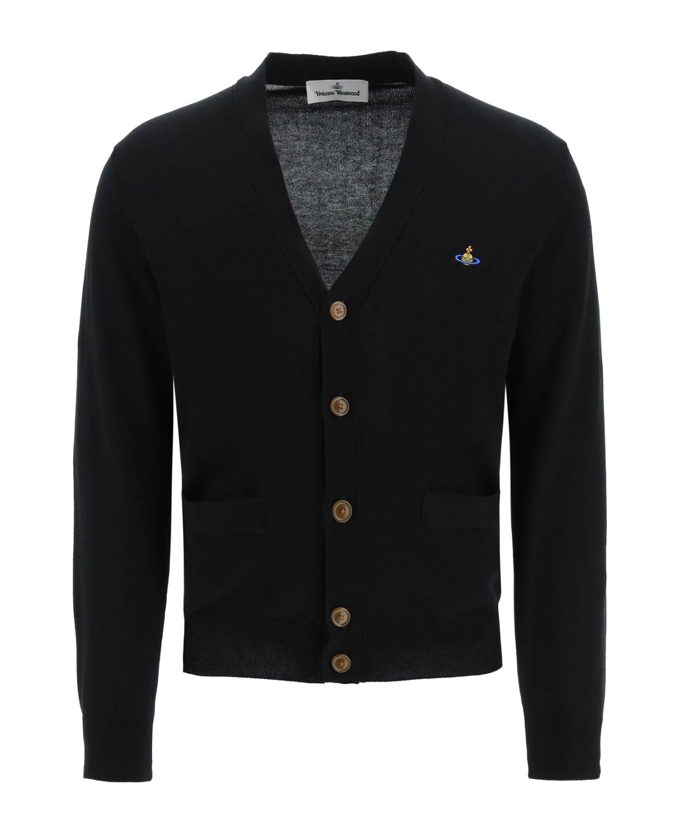 Vivienne Westwood V-neck cardigan crafted in pure cotton. Enhanced by the Orb logo embroidered on the left side of the chest, it features two patch pockets. Ribbed hem and cuffs. Regular fit. The model is 187 cm tall and wears size L. Composition: 100% CO
