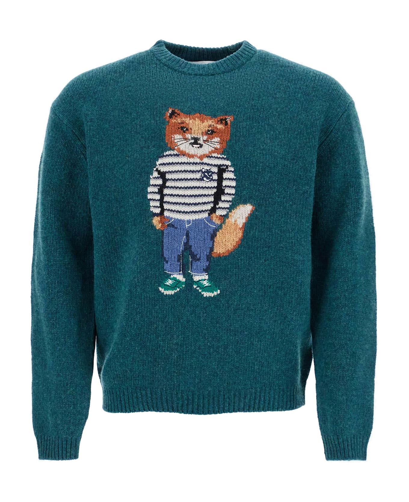 The Maison Kitsune sweater in 100% wool offers elegance and comfort. Unique design with fox intarsia, loose fit, and ribbed finish. Perfect for sophisticated casual looks in autumn.