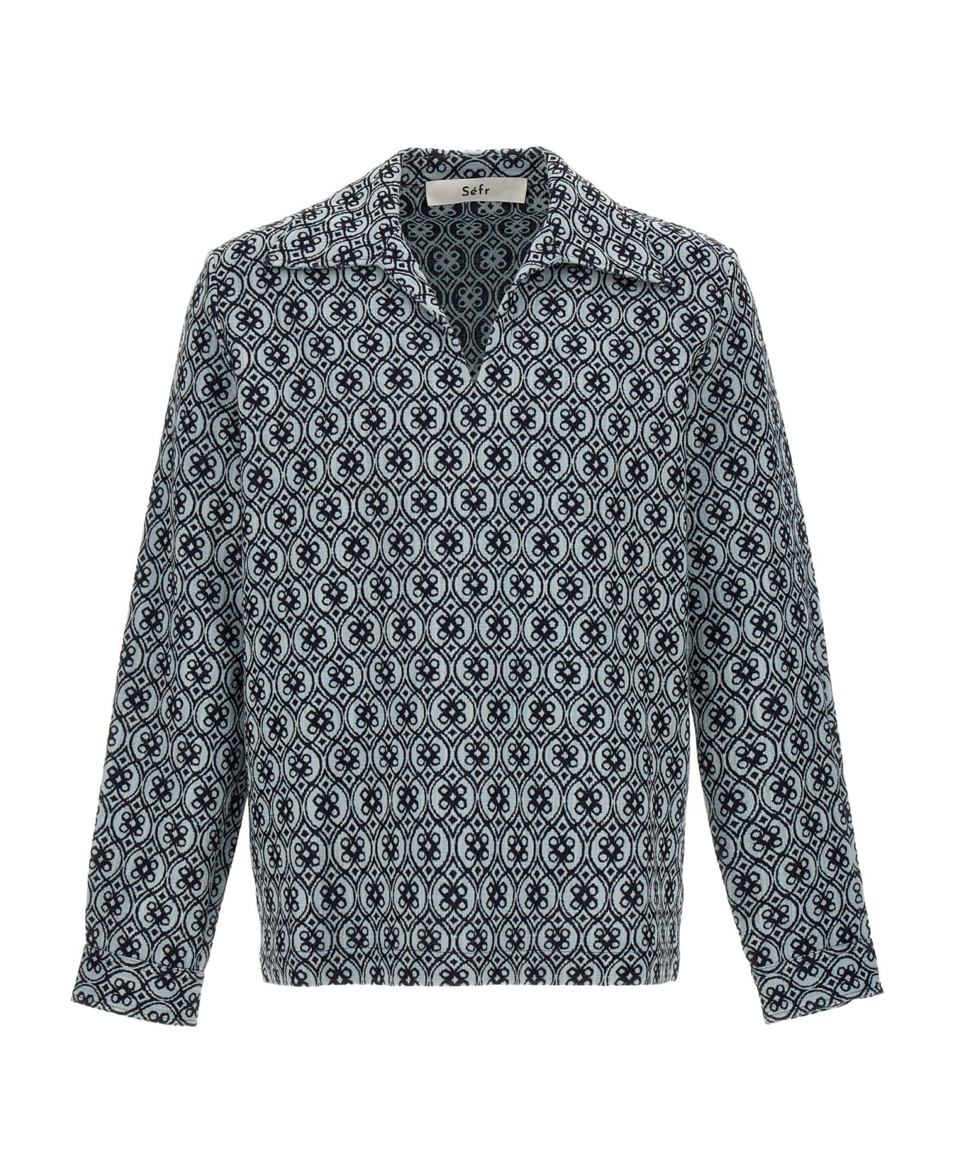 'Louis' cotton and linen blend sweater with all over jacquard pattern, V-neck and collar, long cuffed sleeves.