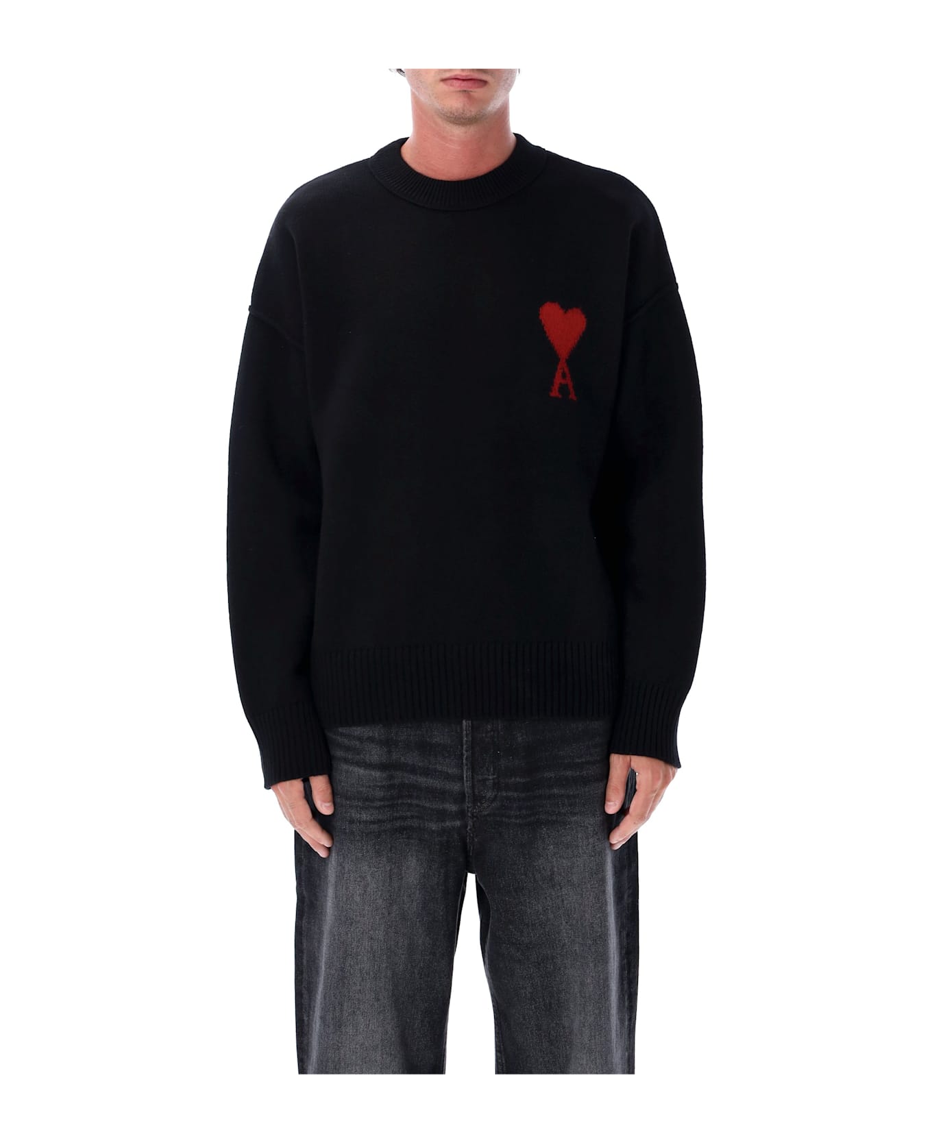 The Ami De Coeur Sweater By Ami Paris Embodies Relaxed Elegance With An Iconic Detail. Crafted From Soft Wool, It Features A Crew Neckline, Dropped Shoulders, And A Loose Fit For Modern Comfort. The Signature Red Ami De Coeur Intarsia At The Chest Stands Out As A Refined Emblem, While Ribbed Trims Complete The Piece With A Sophisticated Finish. Classic Crew Neck