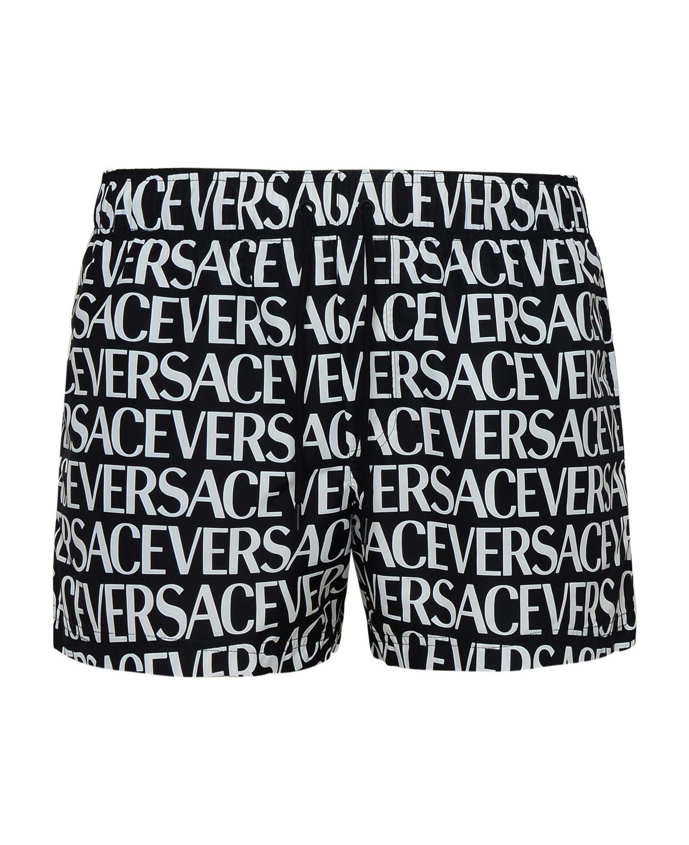 Elastic waistband with drawstring, all over VERSACE print, side pockets, Velcro pocket at the back Composition: 100% Polyester