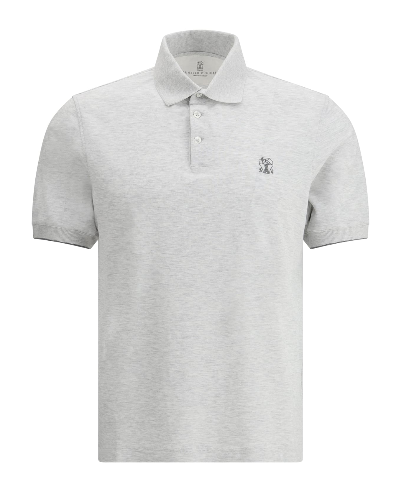 Cotton polo shirt by brunello cucinelli, featuring classic ribbed collar, front buttons, contrasting iconic brand logo on front, ribbed sleeves with contrasting piping, monochrome pattern, regular fit. Composition: 100% % Cotton