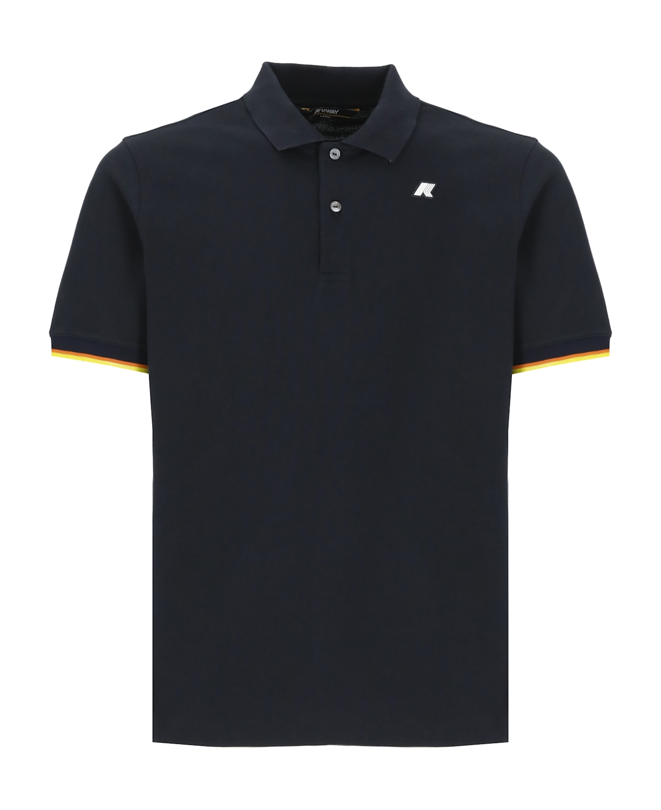 - Blue K-Way cotton two-button polo shirt for man - Collar - Short sleeves with contrasting color details - Two side vents at hem - Front contrasting color logo