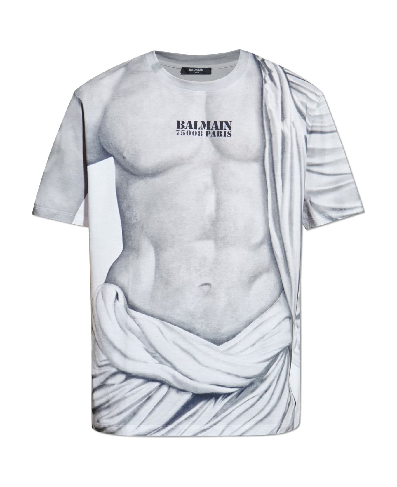 The Balmain Printed T-shirt embodies avant-garde artistry and refined craftsmanship. Fashioned from exceptionally smooth, high-quality cotton typical of couture collections, this classic crew neck silhouette offers a subtly oversized fit for a contemporary edge. Its defining feature is an extraordinarily realistic print evoking the illusion of an antique draped sculpture which seamlessly envelops the entire garment. This striking design is further elevated by the legendary BALMAIN 75008 PARIS inscription gracing the upper chest, announcing the storied French maison's indelible identity. Every detail reflects meticulous attention to graphic precision, assuring a wearable piece of art for those who appreciate opulence and modern extravagance. Why choose this product? Exquisite designer quality and sartorial heritage Luxuriously soft, high-grade cotton for all-day comfort Unparalleled 3D illusion print for a distinguished statement Instantly recognizable Balmain signature for the discerning collector Flawless attention to visual detail and modern tailoring