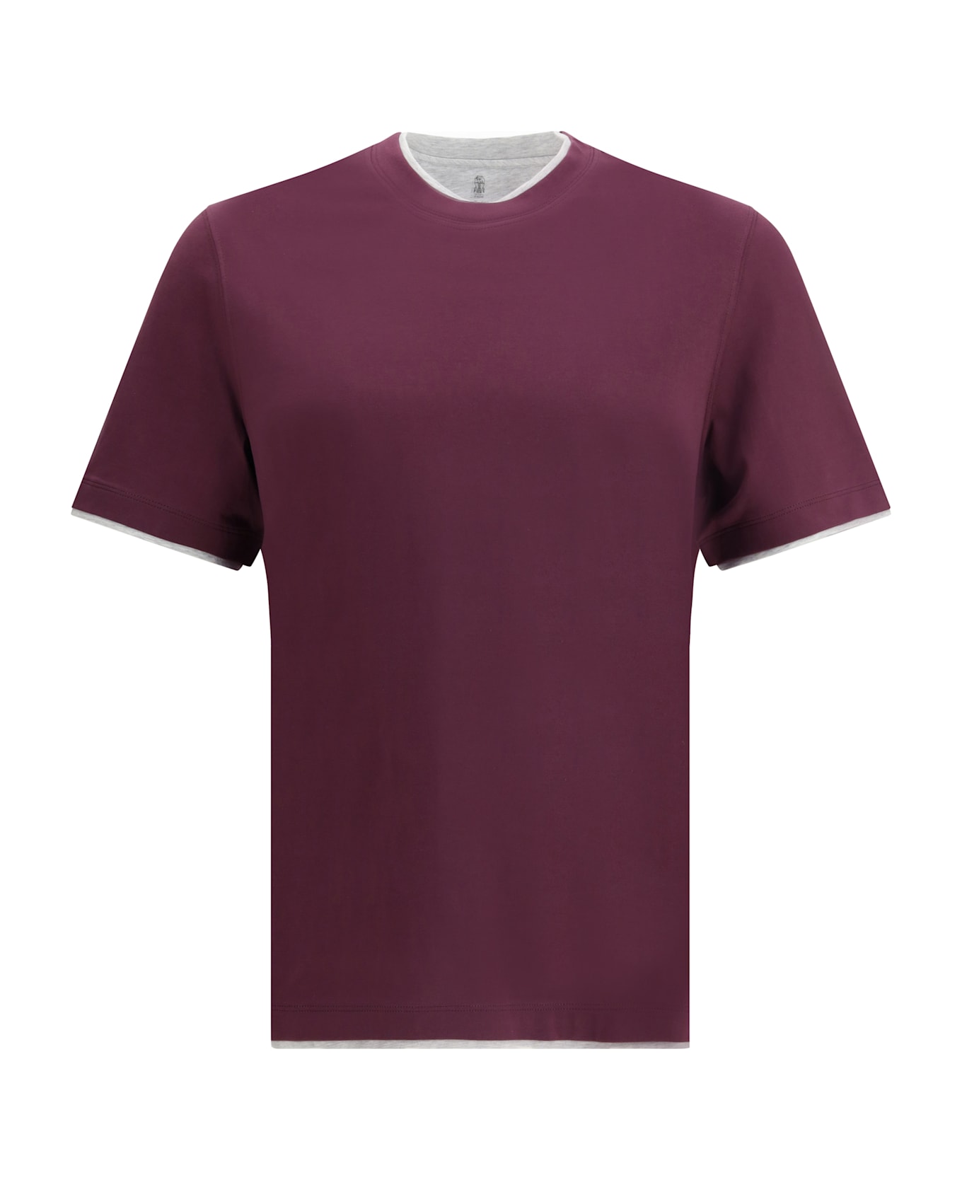 The cotton t-shirt by brunello cucinelli features a refined and versatile design, featuring a two-tone double layer at the hems that adds an interesting visual detail. the monochrome pattern lends a clean, elegant look that is easily paired with a variety of outfits. with a regular fit, this t-shirt offers optimal comfort while maintaining a sophisticated and contemporary look.