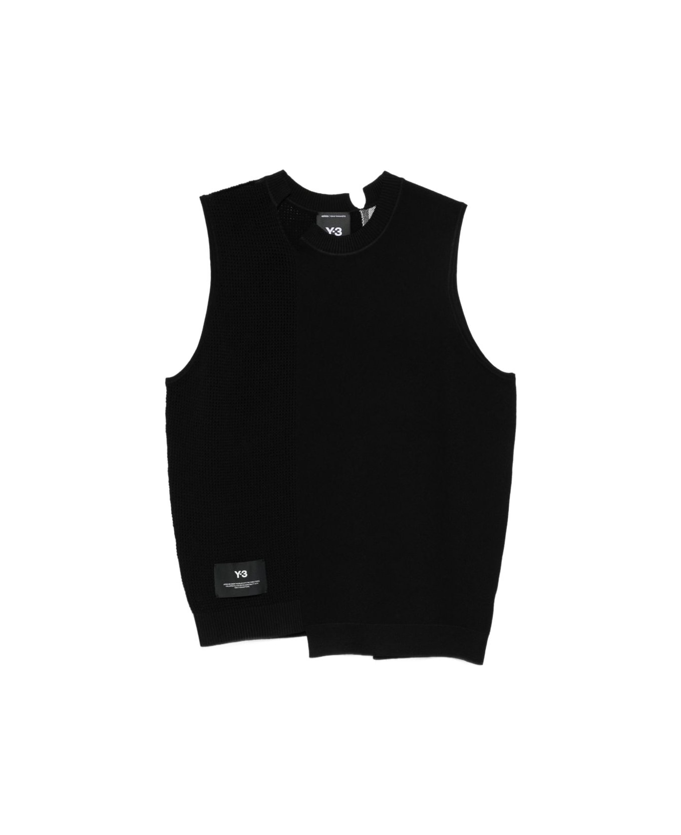 black knit texture logo patch round neck sleeveless asymmetric hem