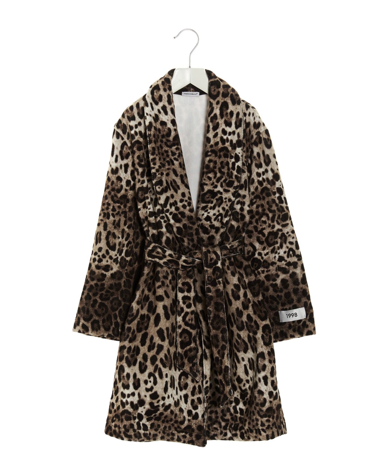 '1998' cotton terry bathrobe with animal print, belt at the waist, long sleeves. leeves. Composition: 100% cotton