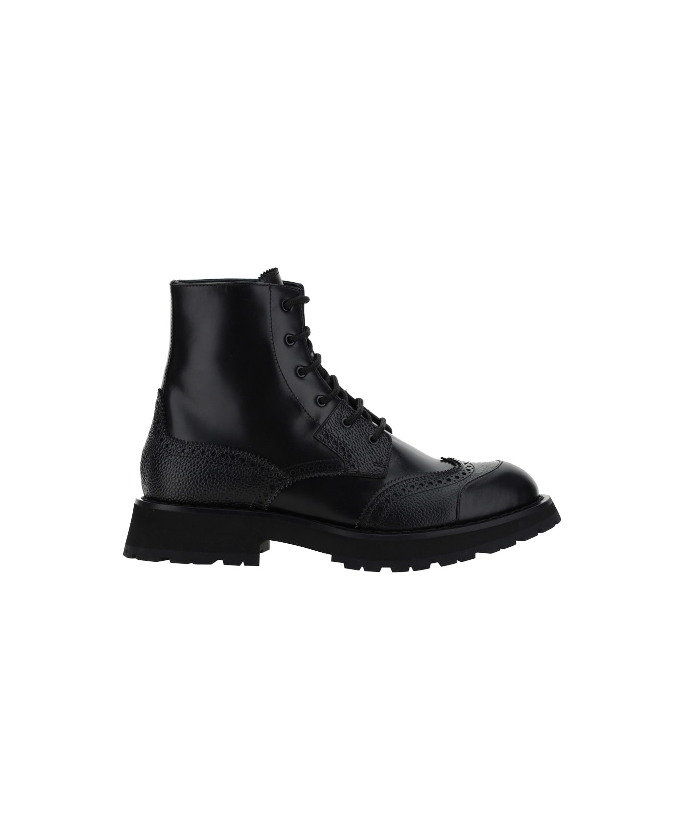Calfskin ankle boots by alexander mc queen, round toe, lace-up front closure, ankle height, textured sole on heel. Composition: 100% % Calf Leather Bos Taurus, 100% % Rubber