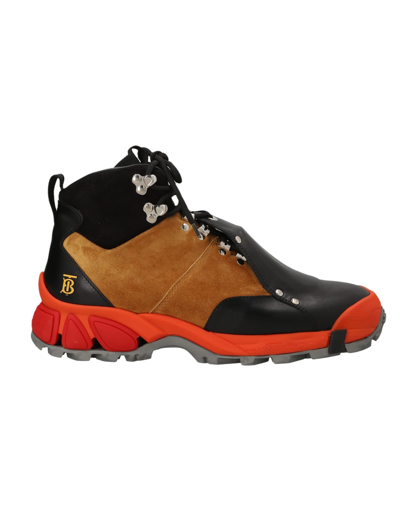 'Tor' leather and suede lace-up boots, rubber outsoles inspired by the Burberry tartan pattern, lace-up monogram, silicone logo label and a logo at the back.