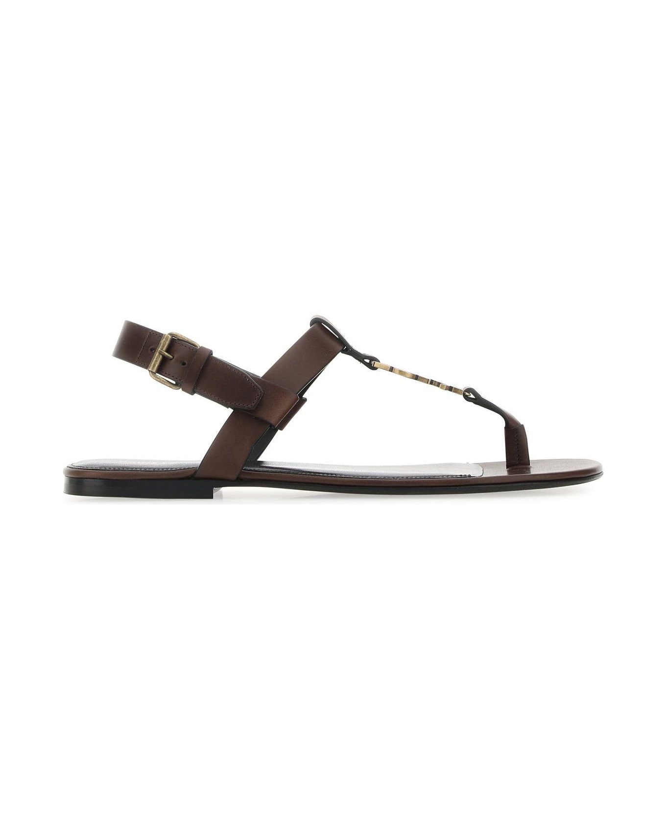 Thong sandals realized in leather enriched by iconic metal Monogram detail on the instep. - Round toe - Closure by adjustable ankle strap - Printed logo on the inside Composition: Exterior: 100% Leather Interior: 100% Leather Sole: Rubber