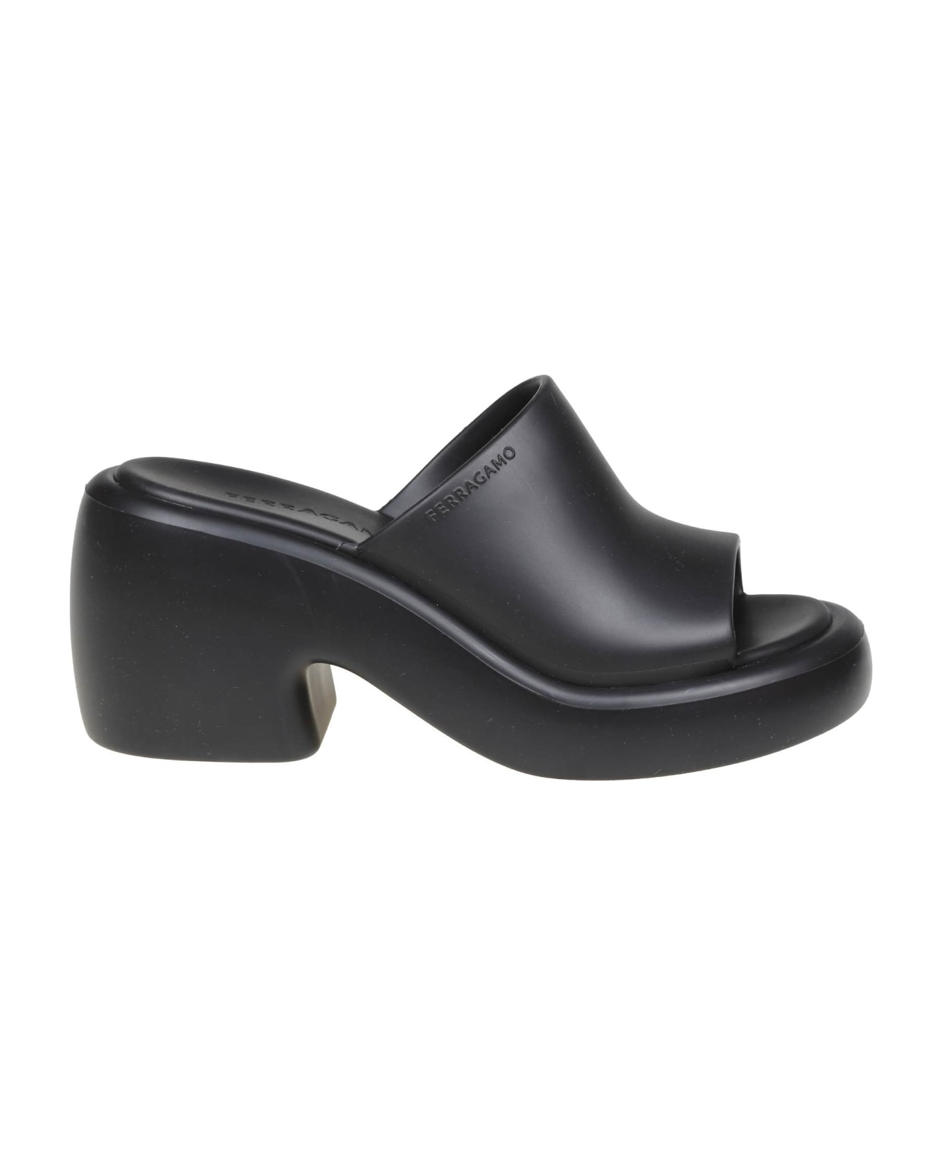 Rubber slippers black colour model with open toe rubber interior tone-on-tone side logo heel height 8. 5cm rubber sole external composition: 100% rubber made in italy
