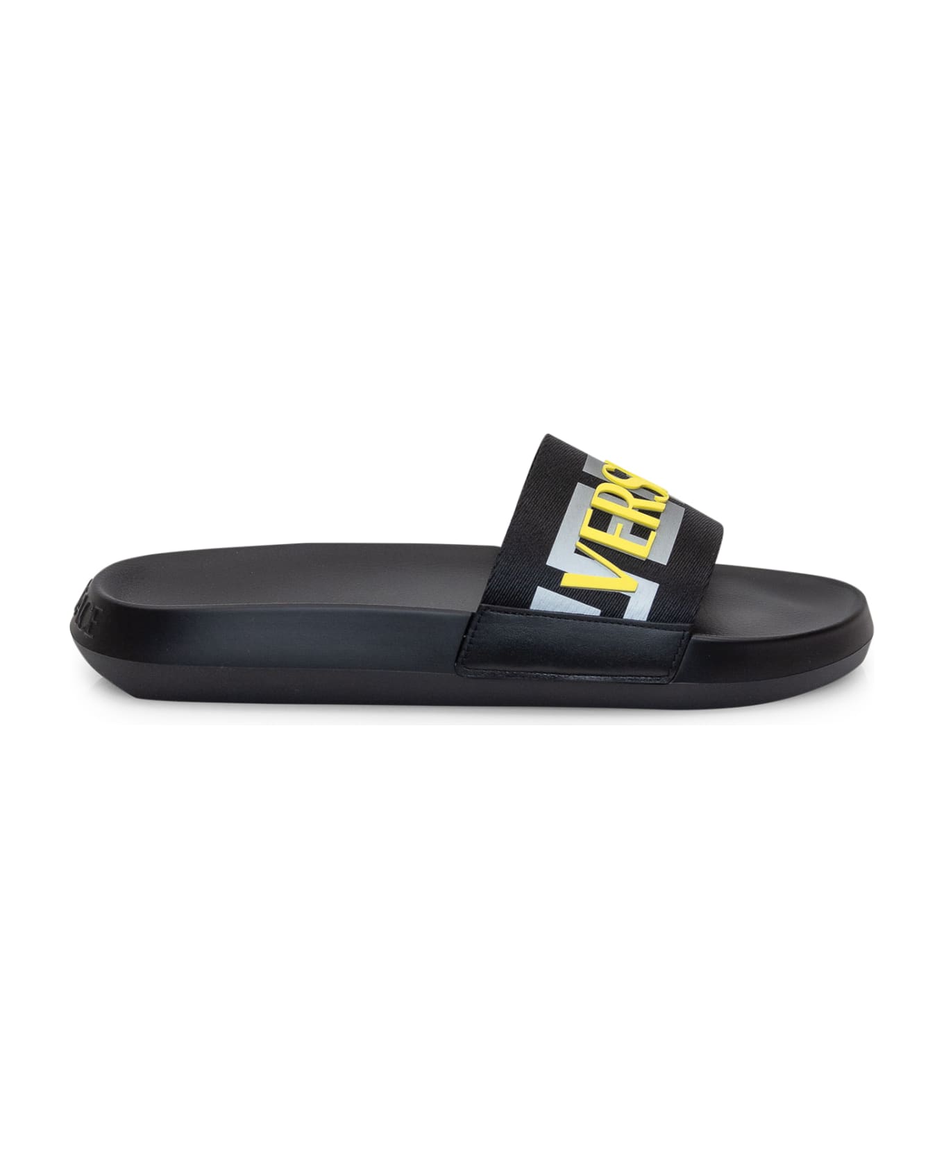 Black slide. Logo and Greca on the mask. Logo on the heel. Composition: Outside:, 100% Leatherlining:, 100% Rubbersole:, 100% Rubber