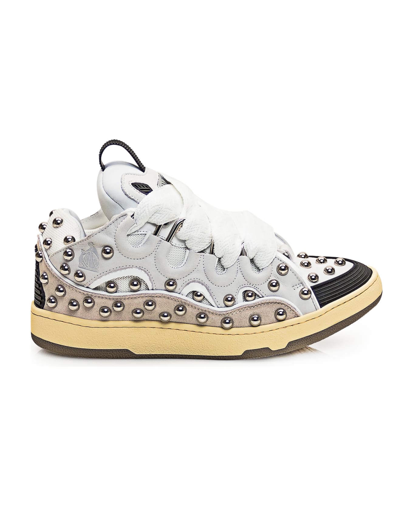 White sneaker in leather. Suede inserts. All-over studs effect. Closure with laces. Logo on the tongue. Composition: Outside: 100% Leather, 100% Fabric Lining: 100% Leather, 100% Fabric Sole: 100% Rubber