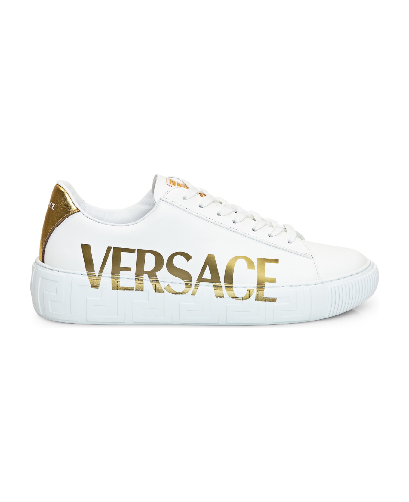 Low white sneaker. Lace-up closure. La Greca pattern on the sole. Logo on the side and heel. Composition: Outside:, 100% Leather Lining:, 100% Leather Sole:, 100% Rubber