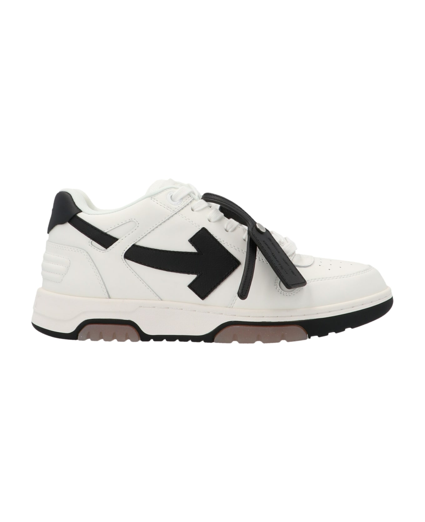 Out Of Office' leather lace-up sneakers with side logo, contrast details, and a rubber sole. Composition: