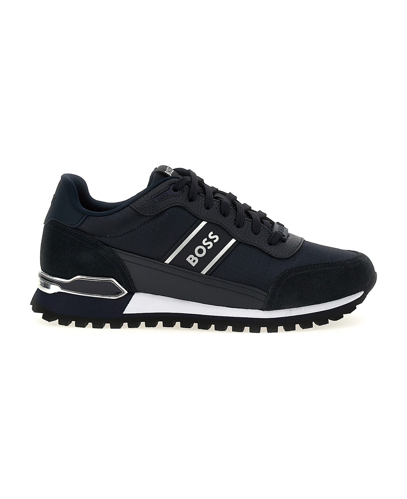 'Parkour' nylon and leather sneakers with side logo print, laces closure, rubber sole.