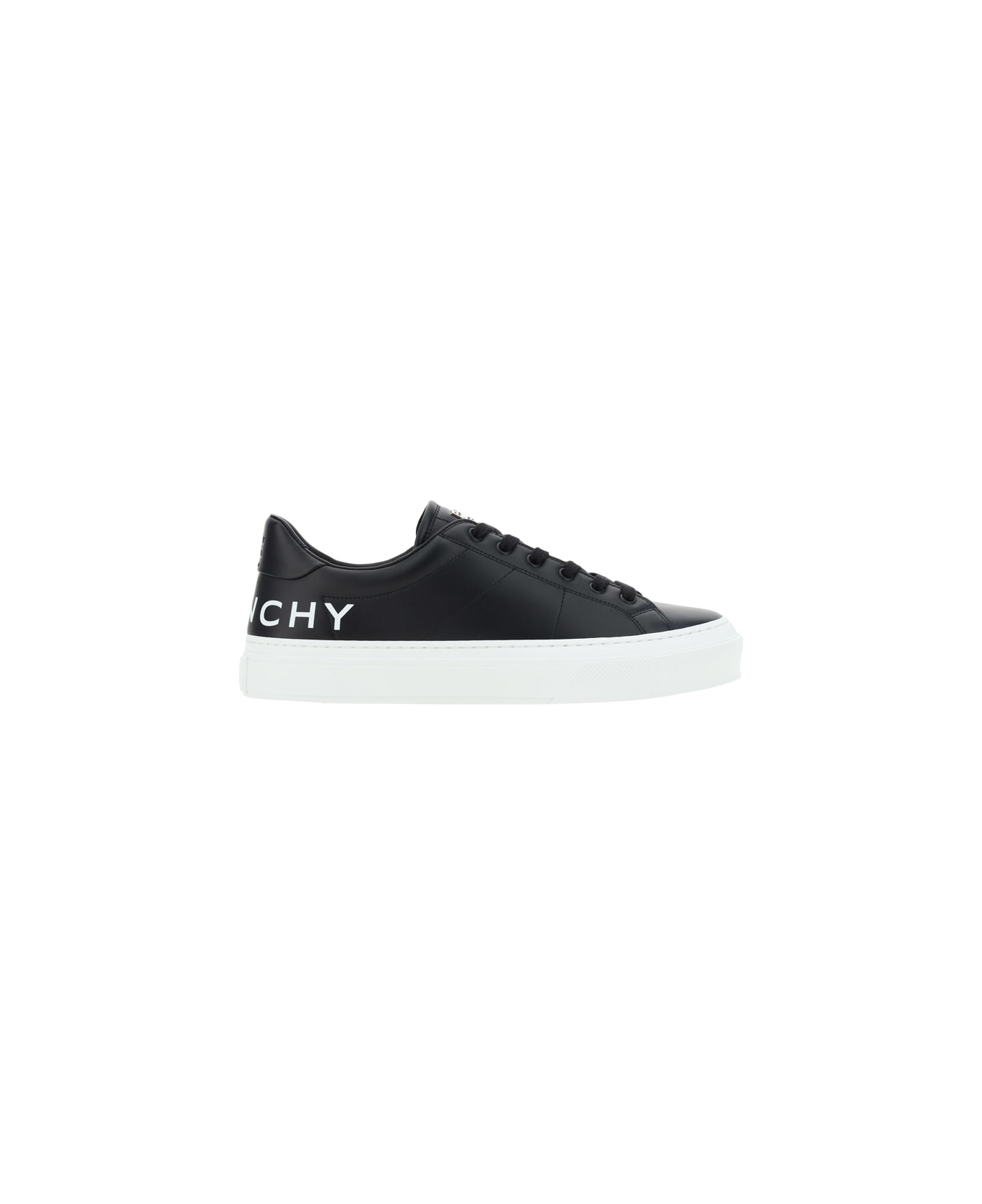 Calfskin sneakers by givenchy, lace-up front closure, round toe, press-stamped logo on front tab, contrasting iconic brand monogram at back, platform sole.