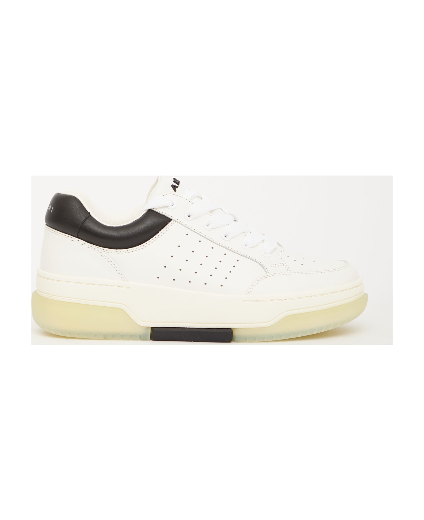 Stadium Low sneakers in white and black padded leather with layered three-tone rubber sole. They feature lace-up closure, embossed Amiri logo on tongue and engraved Amiri logo on the back.
