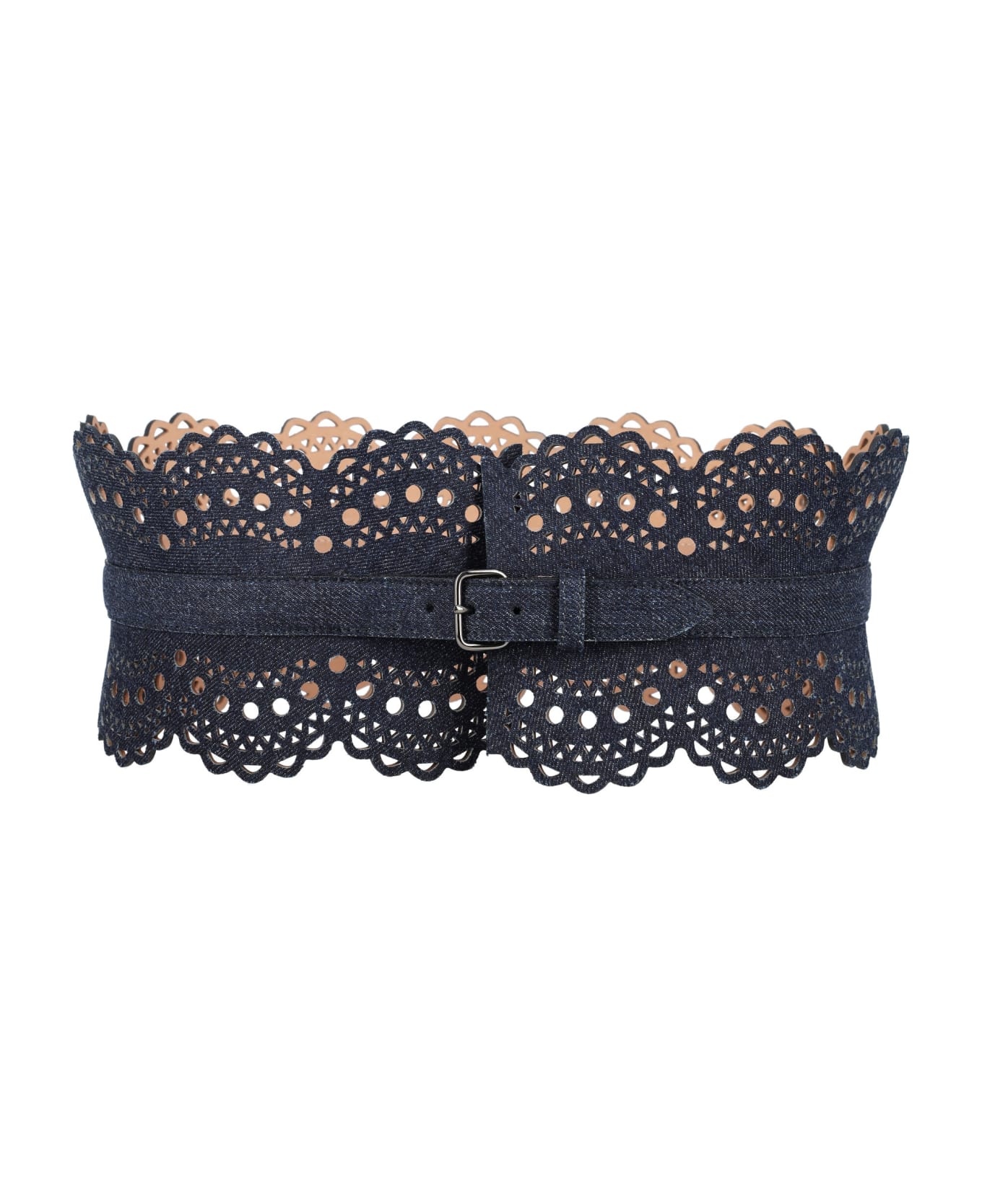 Bustier Belt Denim By Alaia. Featuring: Openwork Bustier Belt Cotton Scalloped Edges Thin Buckle Closure Height: 12cm