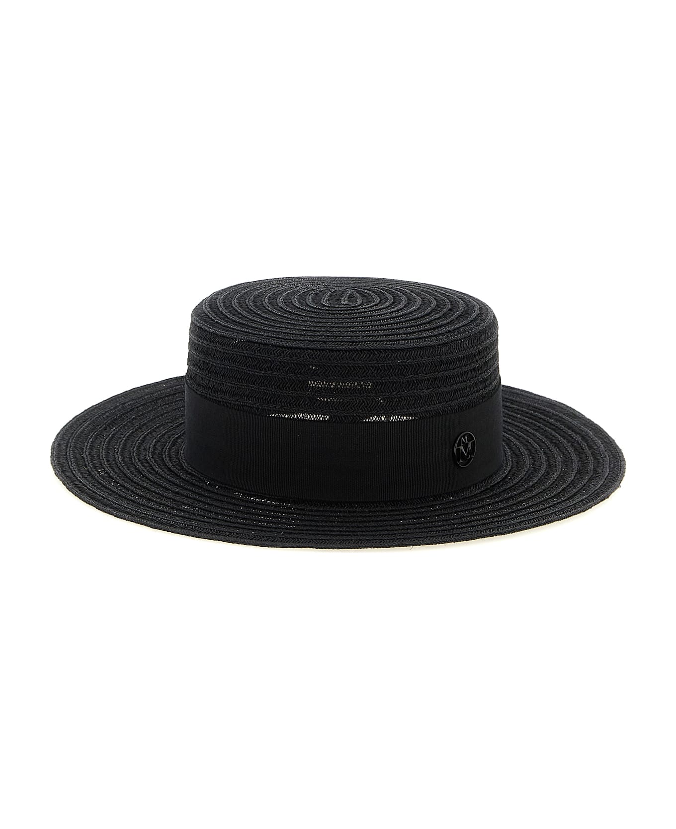 Kiki' straw hat, canotier style with grosgrain ribbon and tone-on-tone metal logo. 'The Iconics' collection. Handcrafted product, any imperfections are to be considered characteristics of uniqueness.