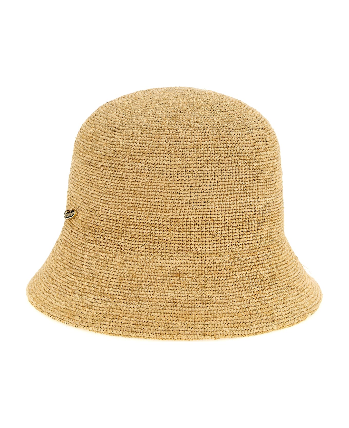 'Koko' hat in raffia worked in crochet and woven manually with the use of a crochet hook to create a light and breathable texture, cloche pattern, galvanized metal logo on the side. Handcrafted product, any imperfections are to be considered characteristics of uniqueness. Composition: 100% hay