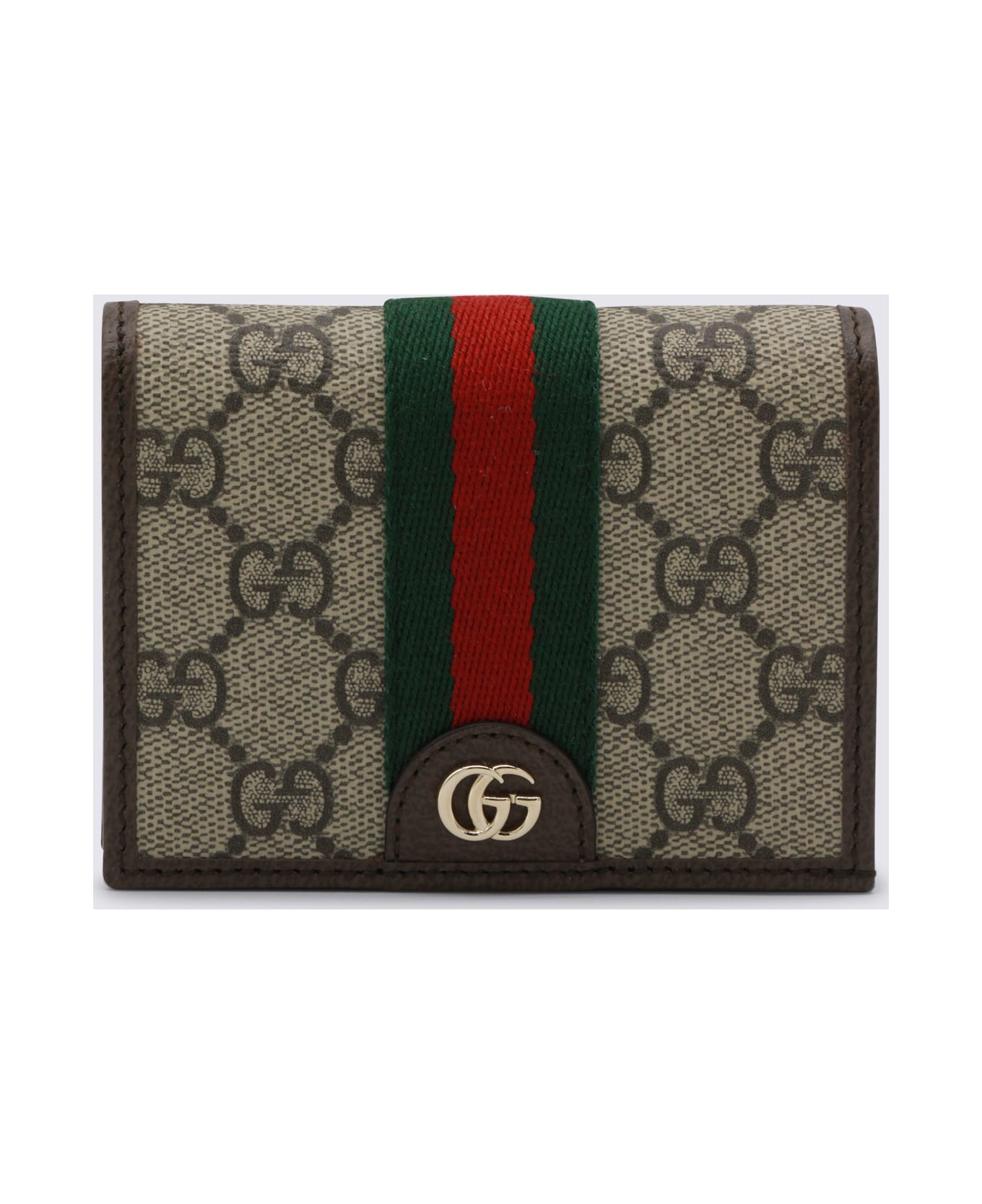 Beige leather wallet from Gucci featuring frontal logo, all over logo pattern and inside pocket and card slots. Composition: _, 100% Le