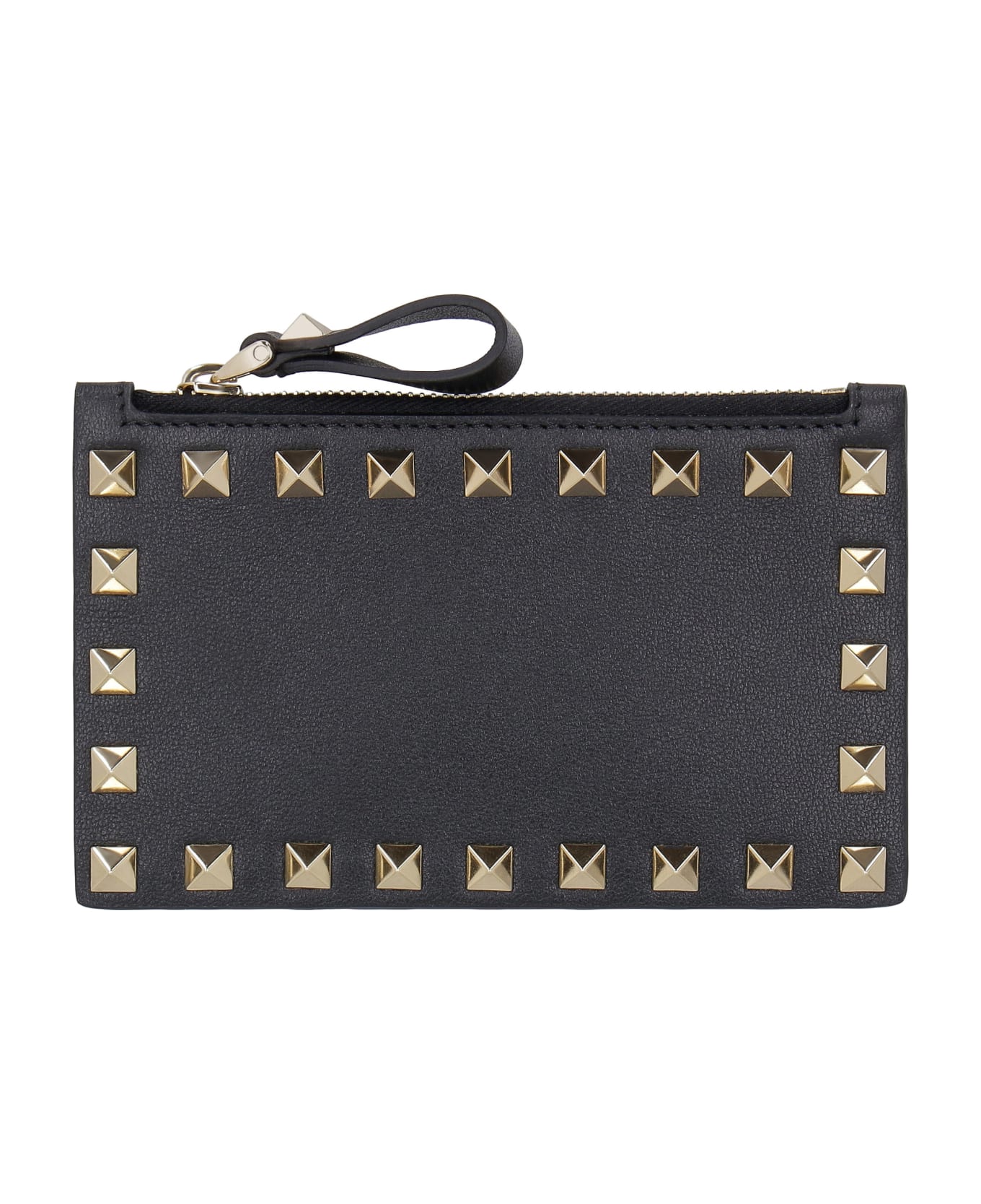 Decorative studs top zippered closure four card slots gold-tone metal hardware width: 13,5 cm height: 8,5 cm 100% calf Composition: 100% % Calf