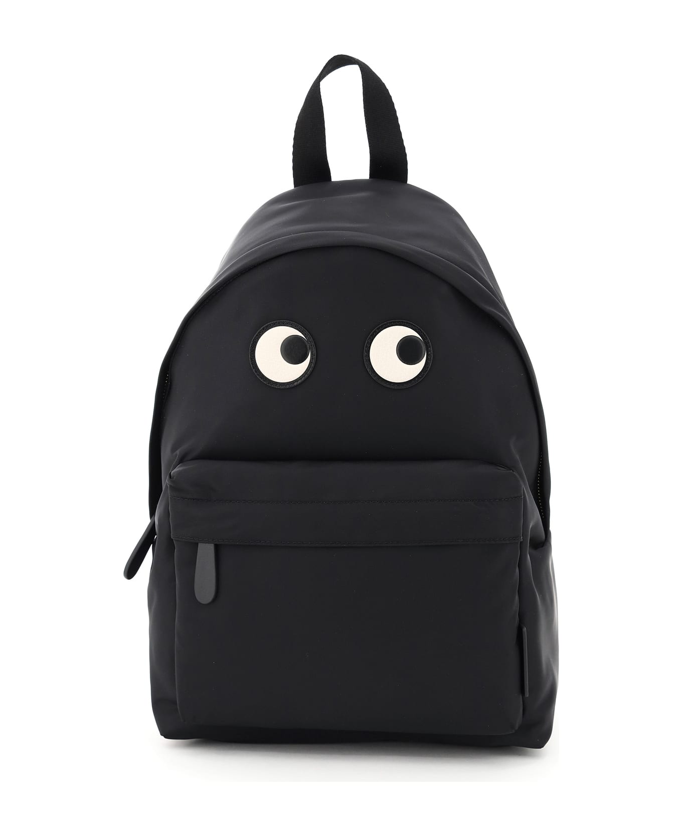 Anya Hindmarch backpack in Econyl regenerated nylon fabric with zip closure and the iconic Eyes patch in leather applied on the front. Adjustable shoulder straps, top handle, front zip compartment and side leather tag with gold-tone logo print. Nylon-lined interior with a flat pocket, gold-tone metalware.