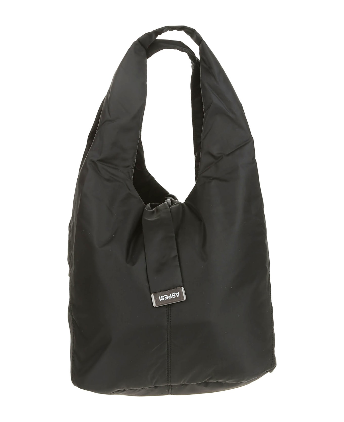 Aspesi Black nylon bag, knot closure, bag model, metal insert with logo.