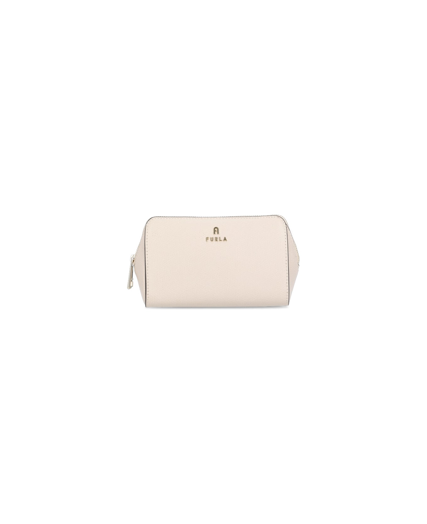 - Pink Furla leather pochette for woman - Welt interior pocket - Front metal logo - Zip fastening