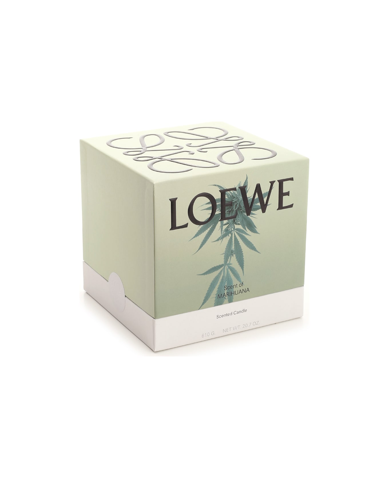 Scented candle with marijuana essence, created in collaboration with the global ambassador of LOEWE, Leo Wu, famous Chinese actor. The 'Marjiuana' candle has an olfactory creation that enhances the most natural and pure scents of nature. Made from natural wax with a cotton wick, the candle is presented in a glazed terracotta pot with a molded base.