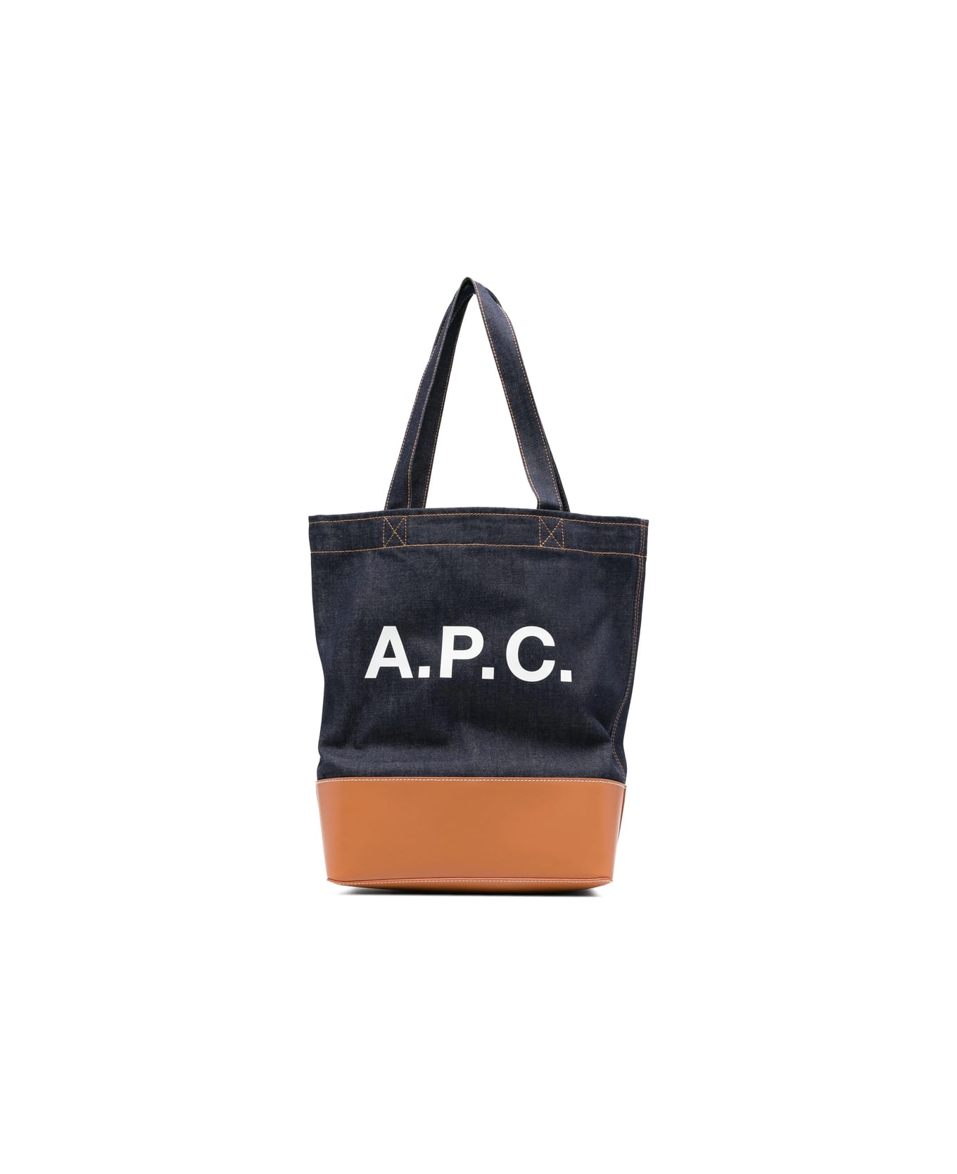 dark blue denim leather base top handles logo print