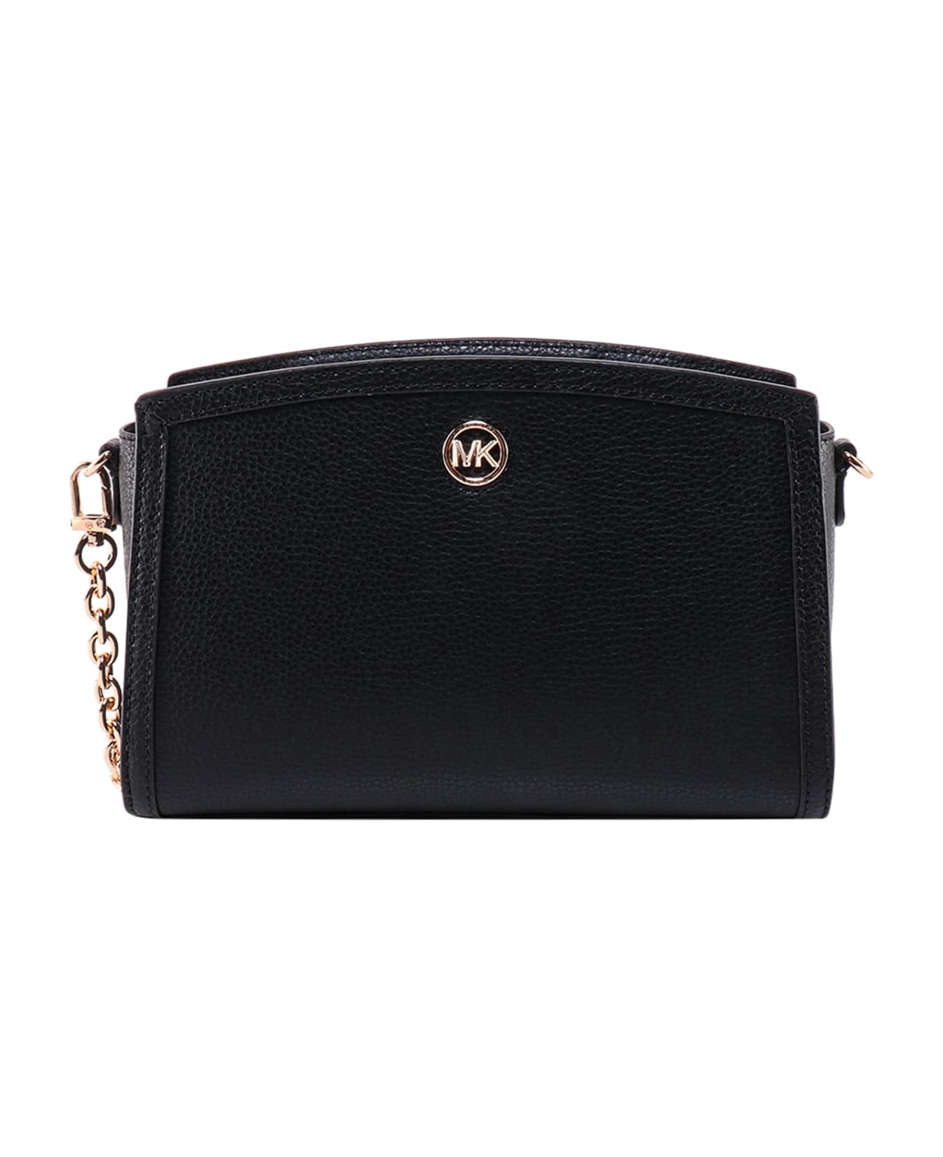Leather shoulder bag with metal monogram