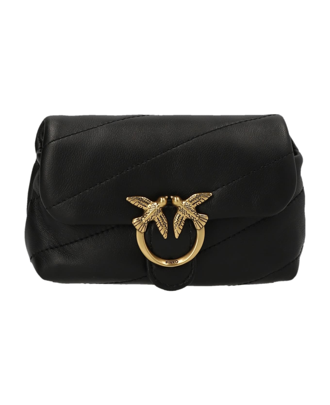 Love Micro Puff' quilted leather crossbody bag with flap closure with front metal logo appliqué and a chain shoulder strap.