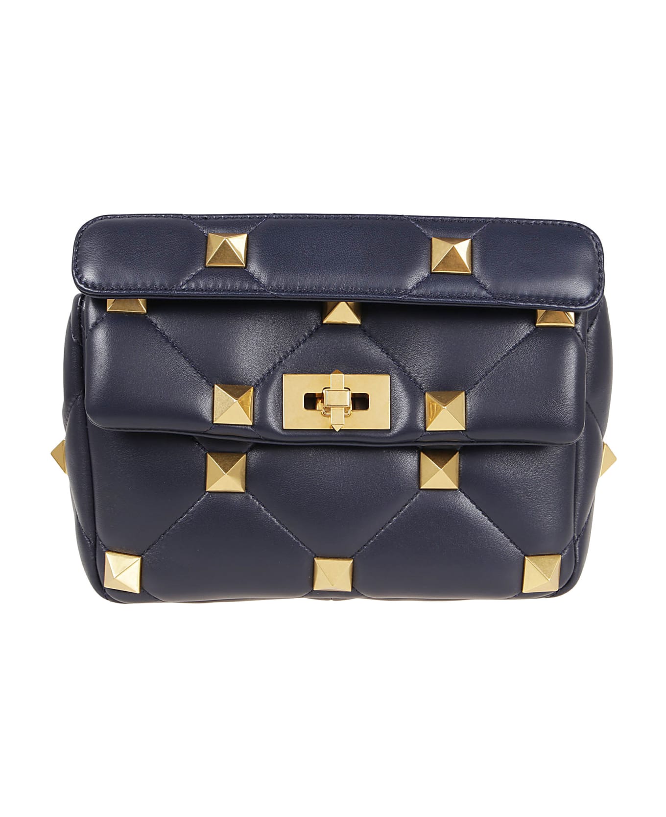 Medium bag with Roman Stud chain BY VALENTINO GARAVANI. In lamb nappa. Featuring a quilted nappa leather with a break-in texture with tone-on-tone stitching and embellished with maxi studs, brand features of the antique brass color like the other metal parts. Turn lock closure; inside zip pocket and two flat open pockets. The bag can be worn both on the shoulder and by hand thanks to the removable handle and the sliding and removable chain. Ideal for an elegant and feminine outfit both with the ballerina or matching decolte` from the Roman Stud collection, or with a sneakers!