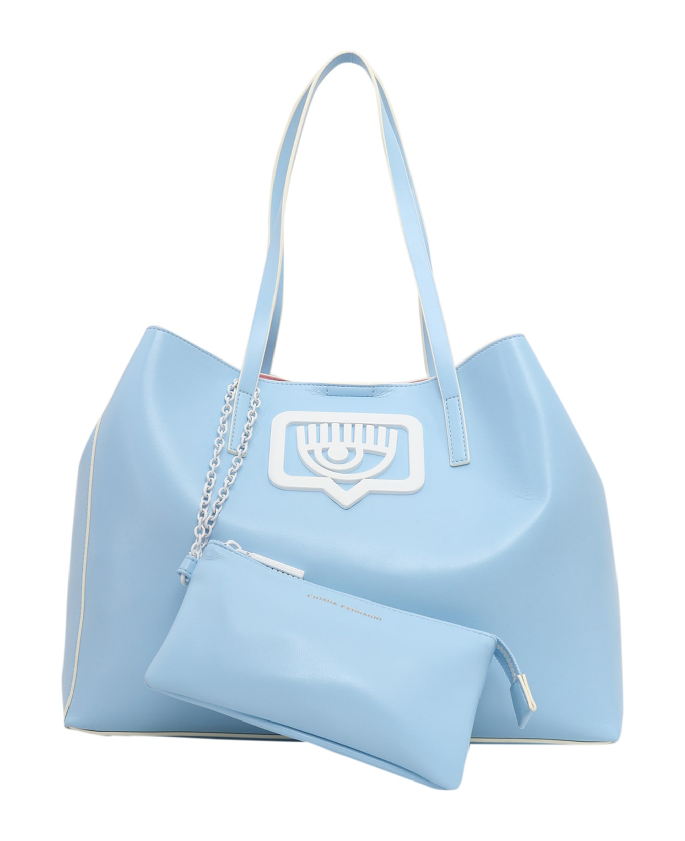 Synthetic leather bag, long top handles, magnetic press stud, contrasting lining, internal open pocket, internal clutch with zip fastened with metal chain, silver-colored Eyelike logo on the front 26 x 12. 5 x 28 cm