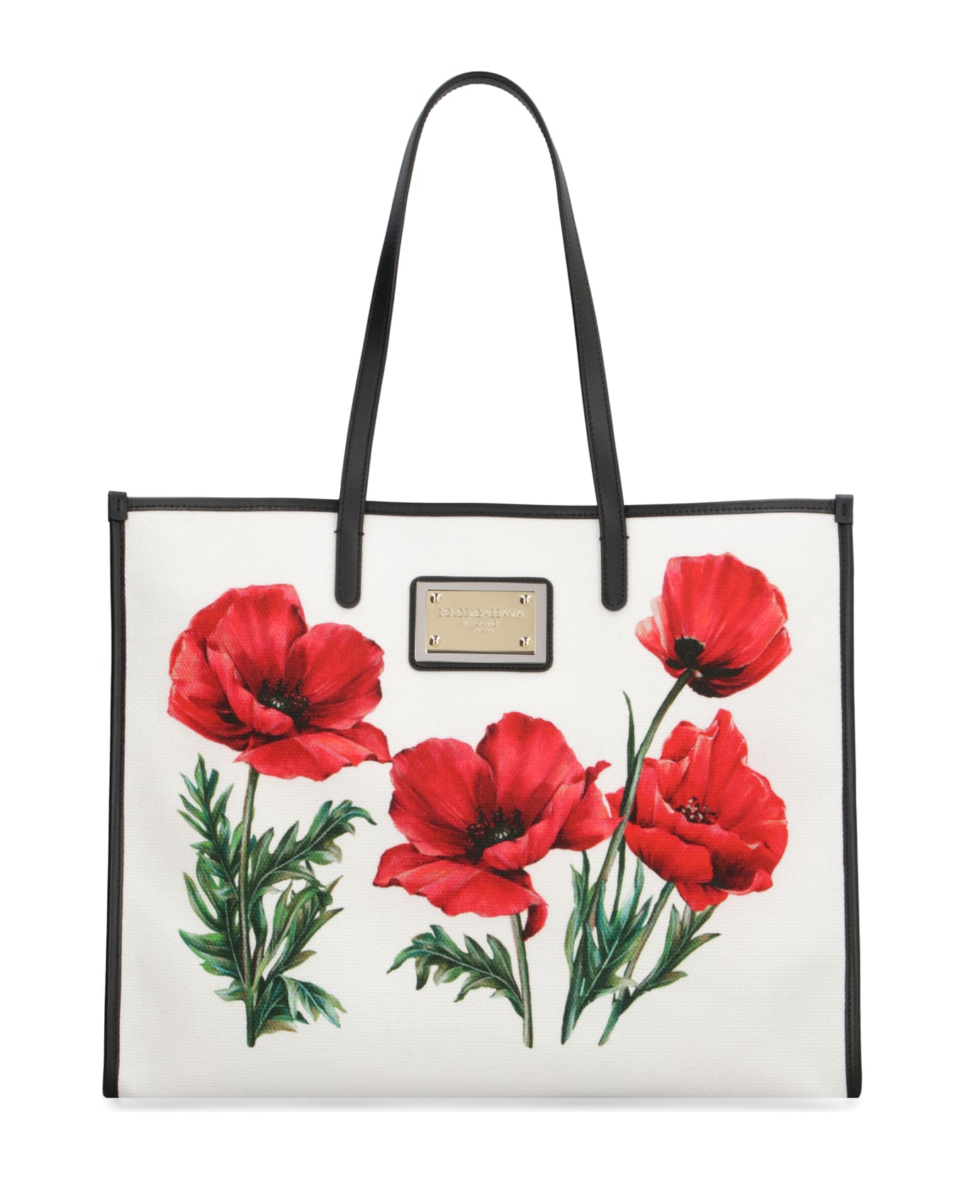Canvas item with leather details floral print one open compartment two leather handles internal zippered pocket printed fabric lining gold-tone metal hardware width: 42,5 cm height: 34,5 cm depth: 17 cm 98% cotton, 85% cotton, 15% calf, 2% calf Composition: 98% % Cotton, 85% % Cotton, 15% % Calf, 2% % Calf