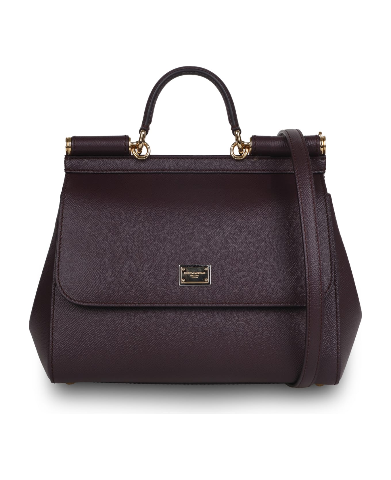 'Sicily' medium tote bag, Burgundy color, single handle, flap with snap button, internal zip pocket, removable shoulder strap, by Dolce & Gabbana Composition: 100% Leather