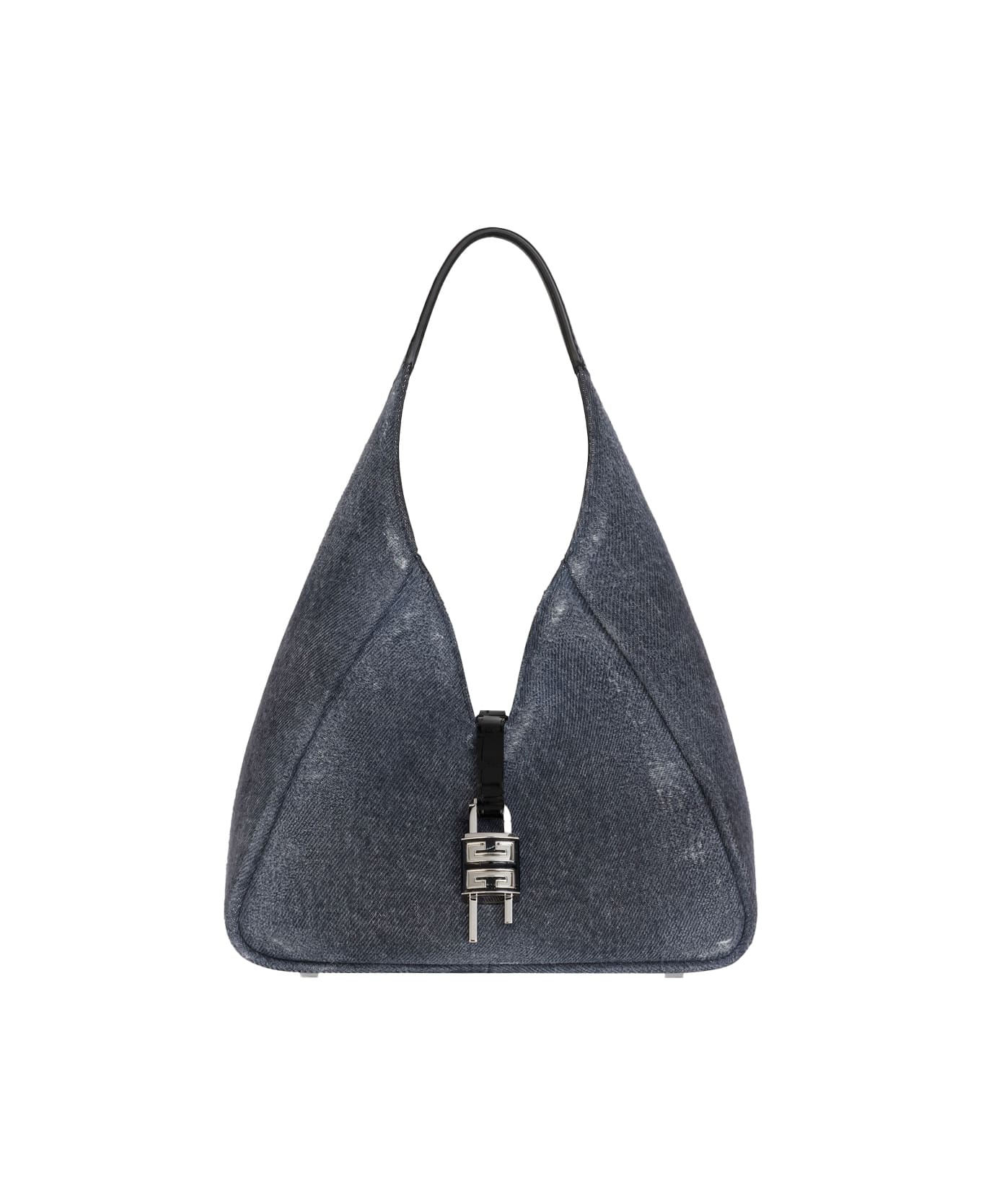 G-Hobo medium shoulder bag signed GIVENCHY made of black washed denim and featuring a main compartment, metallic details with silver finish, metal 4G logo bag feet, reinforced crocodile embossed leather handle, crocodile embossed leather strap closure and 4G metal and leather padlock.