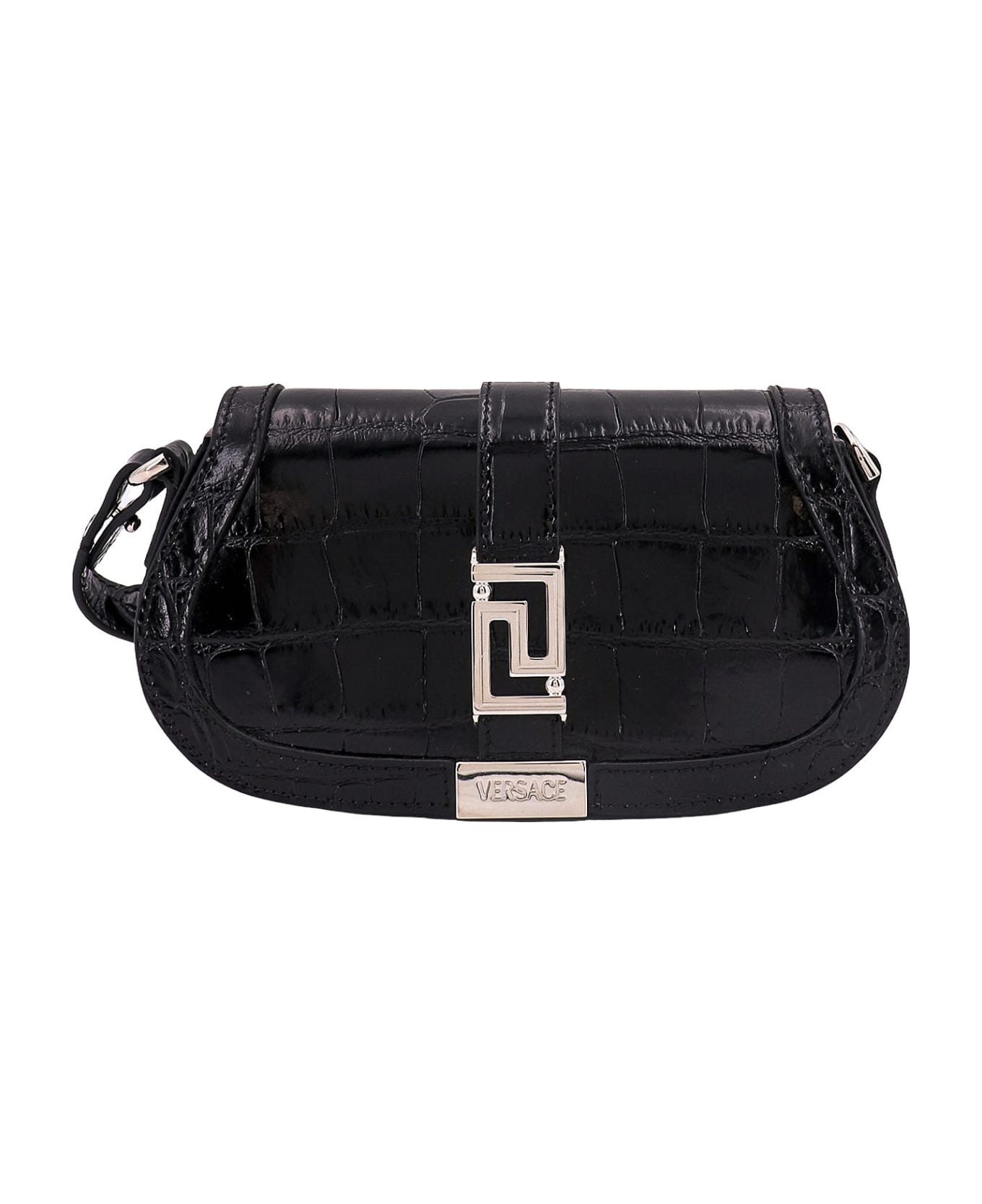Croco leather shoulder bag with frontal La Greca detail