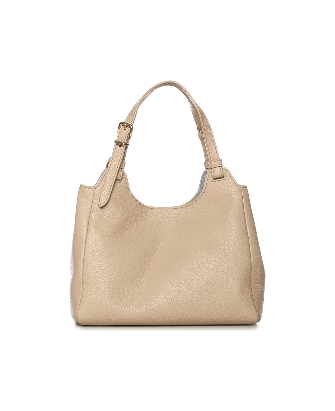 - Made of calfskin - Top handles - Tone-on-tone logo lettering - Adjustable and removable leather shoulder strap - Removable key ring with lock - Made in Italy - Dimensions: 25. 5 x 20 x 13 cm - Designer color: Travertine